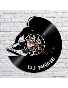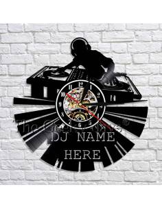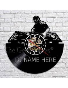 DJ + votre nom 01 - Horloge disque vinyle déco