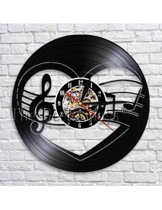 Notes & Clefs de Musique 07 Coeur - Horloge disque vinyle déco