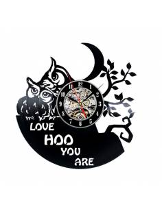 Hiboux d'amour 01 - Horloge disque vinyle déco
