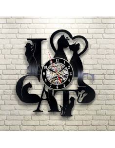 Chat 04 - Horloge disque vinyle déco