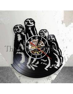 Famille Suricate 01 - Horloge disque vinyle déco